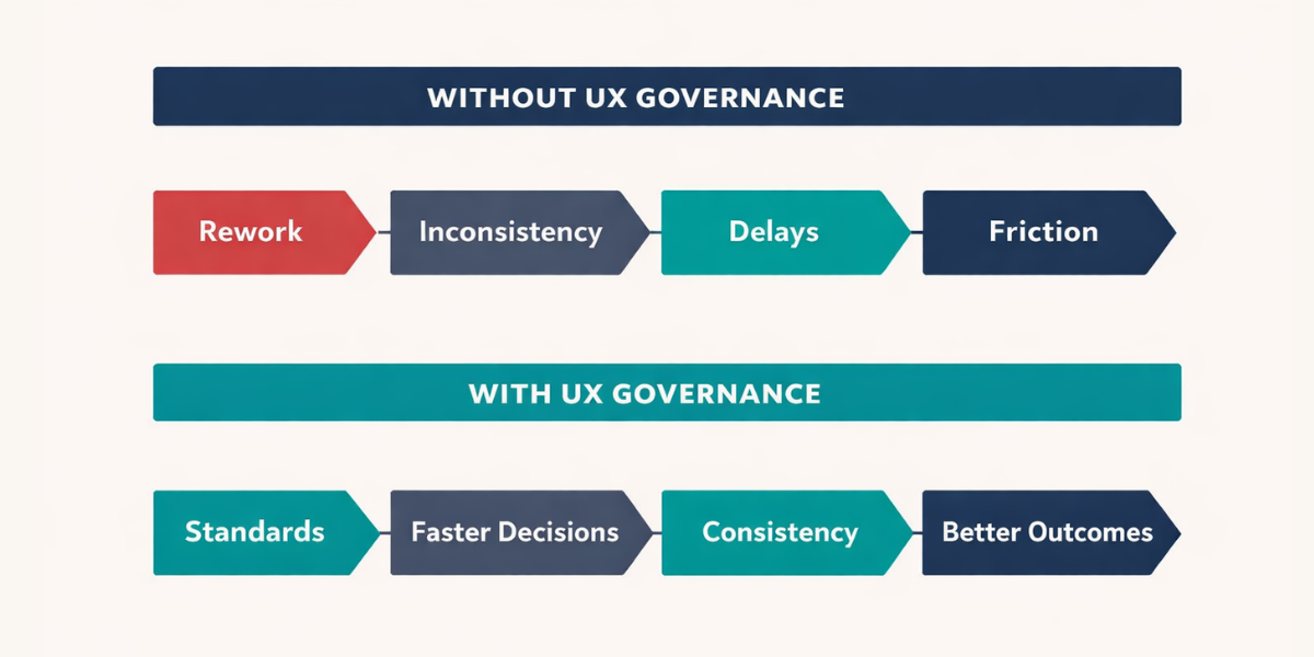 Growth increases complexity. Governance is how a business prevents that complexity from becoming customer friction. In that sense, good UX governance is not about adding process for its own sake. It is about making experience quality sustainable.