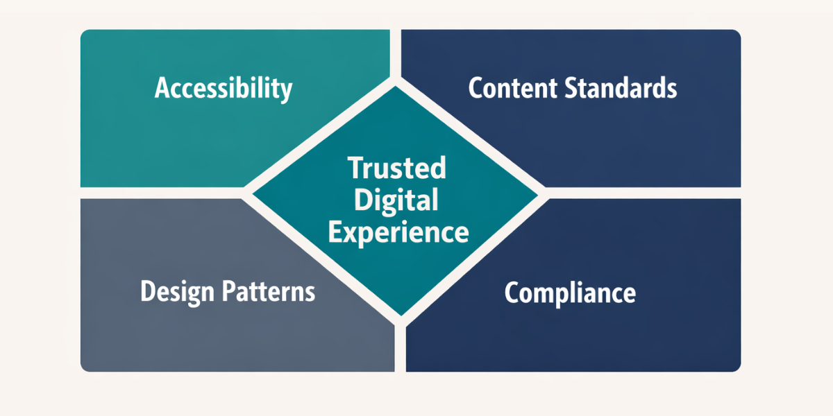 There is a persistent assumption that governance slows teams down. In reality, weak governance is usually what causes rework. When standards are unclear, teams redesign common elements repeatedly. Approval processes become inconsistent. Accessibility issues are discovered late. Messaging varies by department. Development effort goes into solving problems that should already have agreed answers.